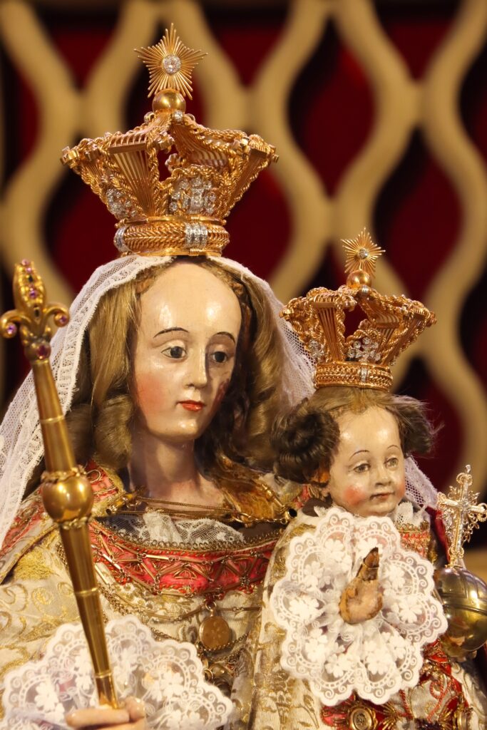 In 1666, Our Lady of Luxembourg was proclaimed as patroness and protectress of Luxembourg City. In 1678, she was proclaimed patroness of the entire Duchy of Luxembourg. In 1766, for the 100th jubilee of her being named patroness and protectress of Luxembourg City, a special votive altar was designed to be used during her two-week Oktav celebration. Luxembourg-born master metalworker Peter Petit fabricated the glorious altar in the Baroque style out of wood and iron. This beautiful altar has been erected each year in the cathedral of Luxembourg City for the Oktav celebration. Pilgrims come to the cathedral from Luxembourg and beyond to pray in front of the statue and to implore Mary’s intercession.