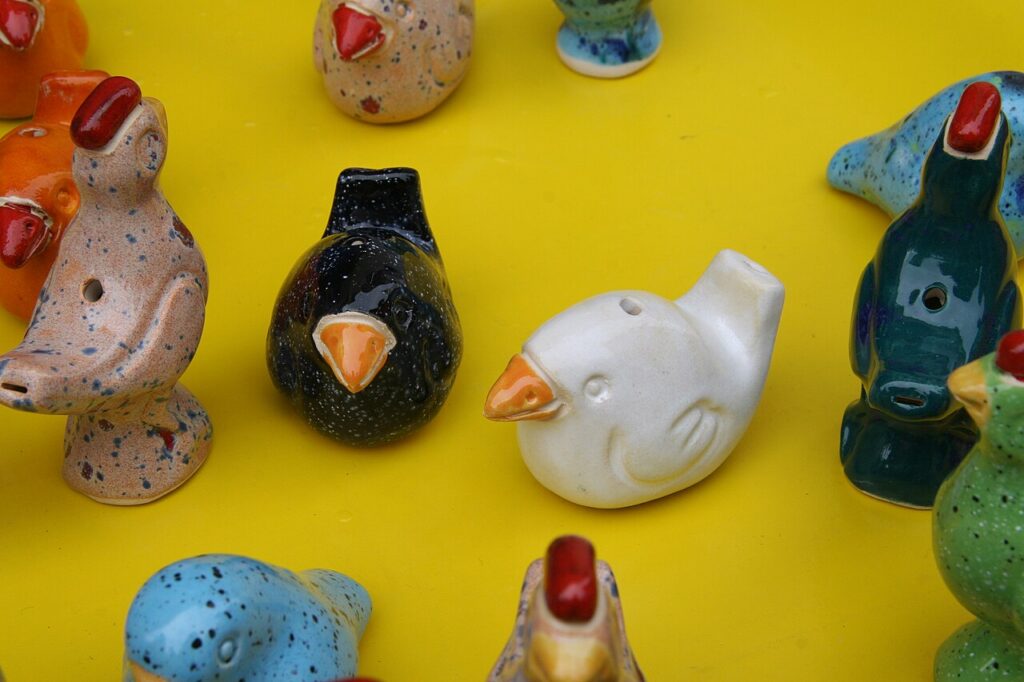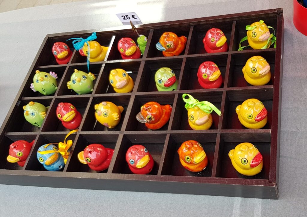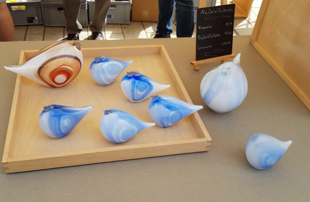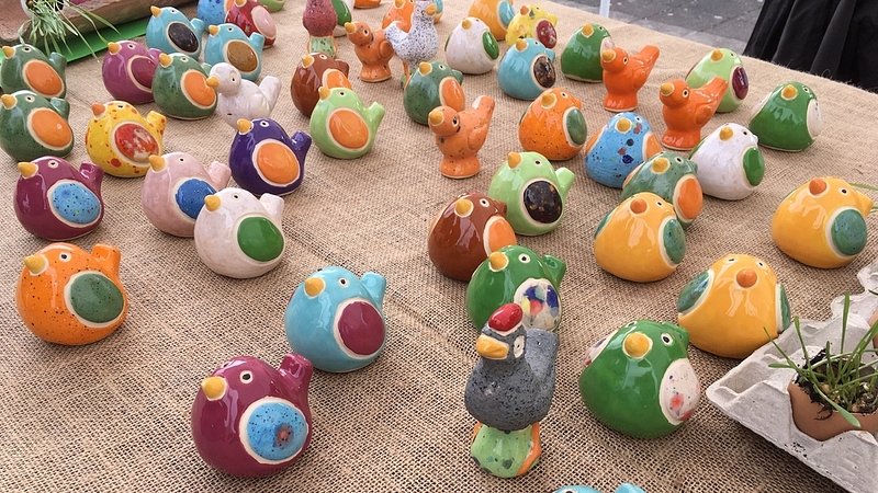 Nospelt began as a potter’s village and the town developed around it. It is said that the potters used leftover clay from plates and crockery to fashion little earthenware bird whistles. Today, Péckvillercher are created in new shapes and glazes each year. If they are from Nospelt, they are stamped on the bottom with the village name and year.