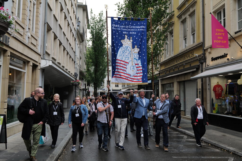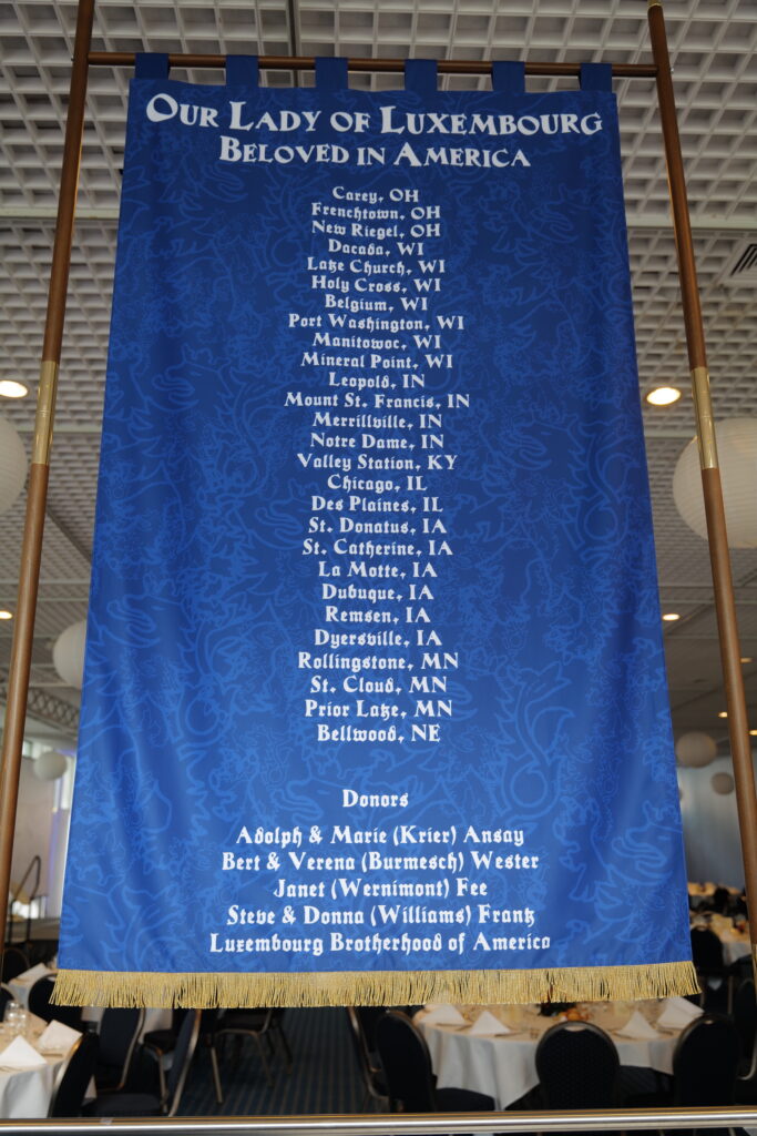 The Luxembourg Legacy tour group proudly carried the banner in the closing procession that day. The 2025 banner continued the tradition of the Luxembourg American community funding banners in 1892 and 1966 to represent the American Luxembourgers and their devotion to Our Lady of Luxembourg.